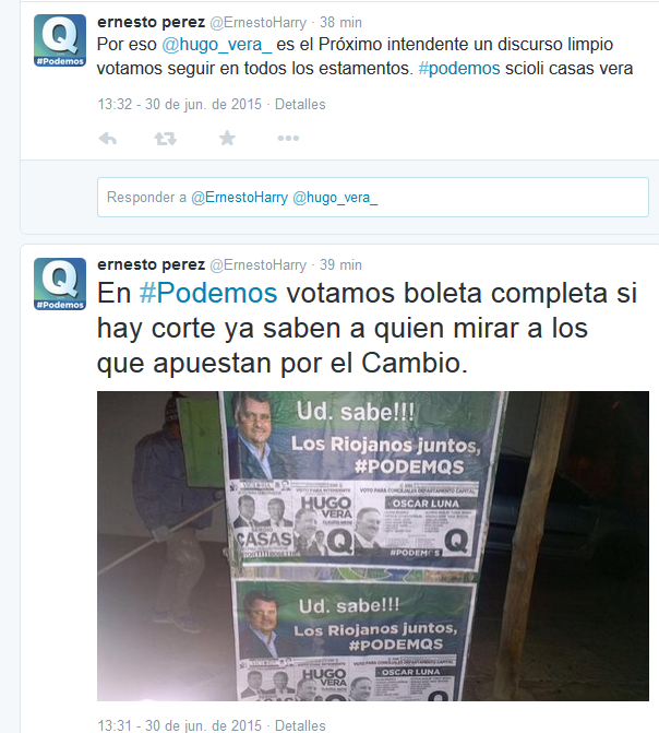 Al respecto, el concejal afirmó que “en #Podemos (el sector al que representa en las elecciones del próximo domingo) votamos boleta completa. Si hay corte ya saben a quién mirar a los que apuestan por el Cambio”.