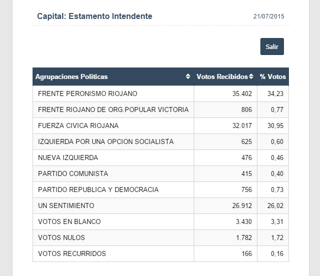 Ese es el resultado de las últimas elecciones a jefe comunal en la Capital, en donde el peronismo presentó dos candidatos (el actual secretario de la Gobernación y el ex diputado quintelista Hugo Vera), aunque la oposición se fortaleció con Inés Brizuela y Doria, cuyo triunfo se dio en el estamento a concejales de Fuerza Cívica Riojana.